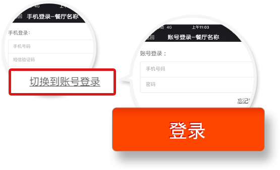 可以选择“手机登录”或者选择“切换到账号登录”,账号登录时,输入手机号码和密码,点击“登录”即可。